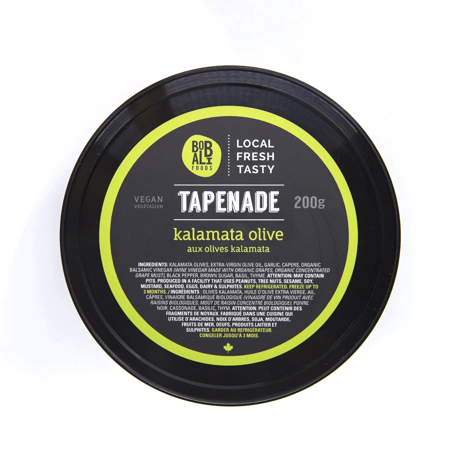 Ingredients: Kalamata olives, extra-virgin olive oil, garlic, capers, organic balsamic vinegar (wine vinegar made with organic grapes, organic concentrated grape must), black pepper, brown sugar, basil & thyme