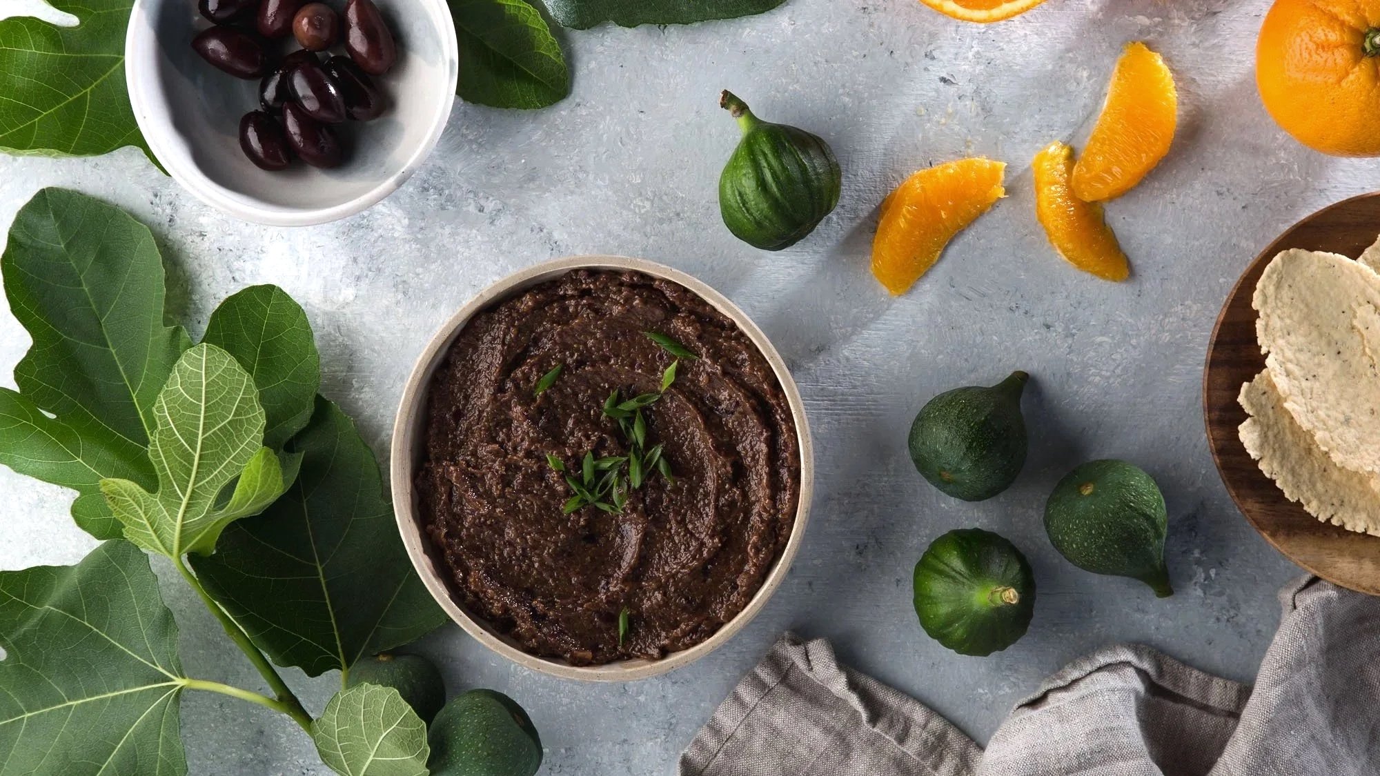 Ingredients: kalamata olives, figs, balsamic vinegar, (wine vinegar made with Organic grapes, organic concentrated grape must), orange, extra-virgin olive oil, capers, garlic, basil & thyme.